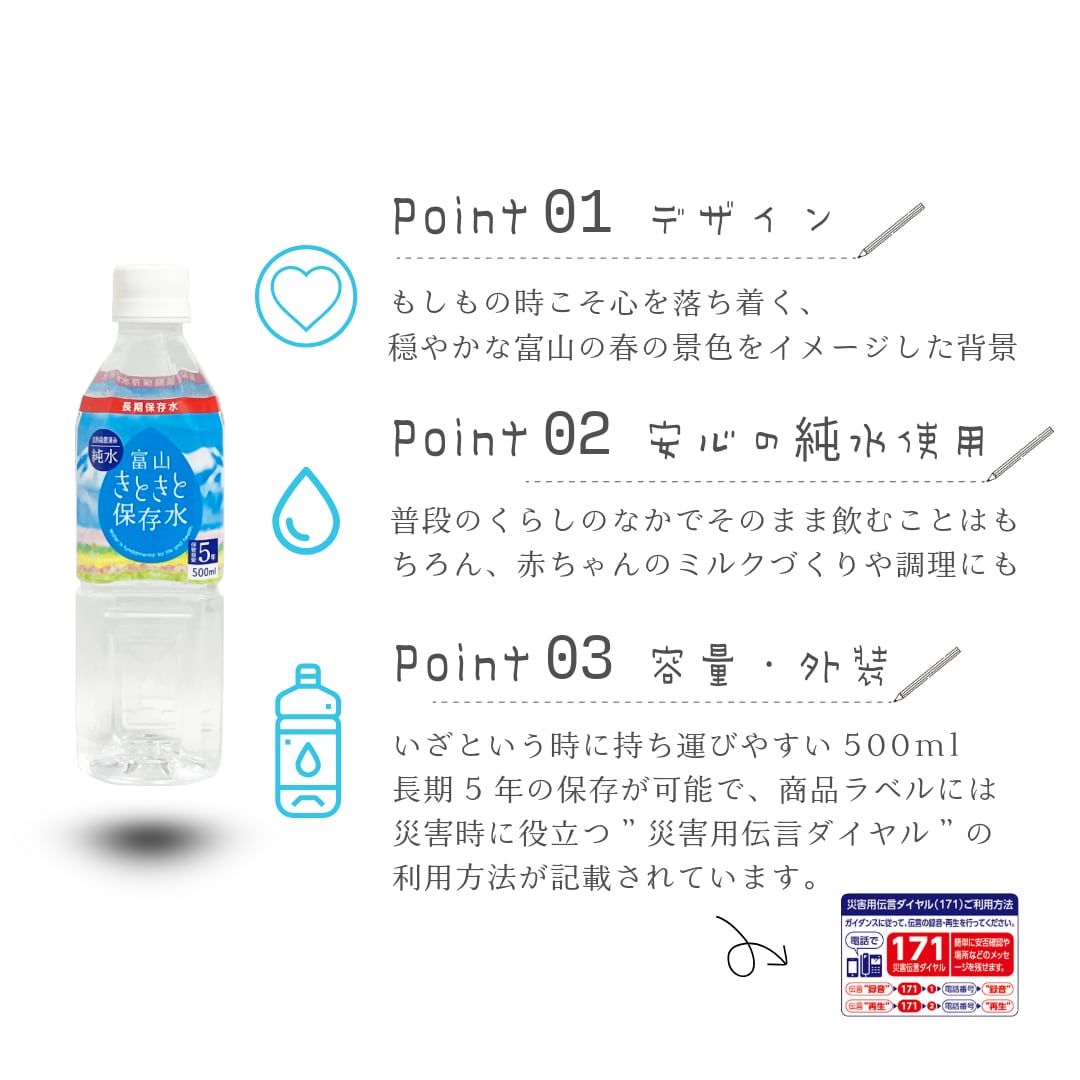 富山きときと保存水 500ml×24本/5年保存 非常時 防災の日 災害