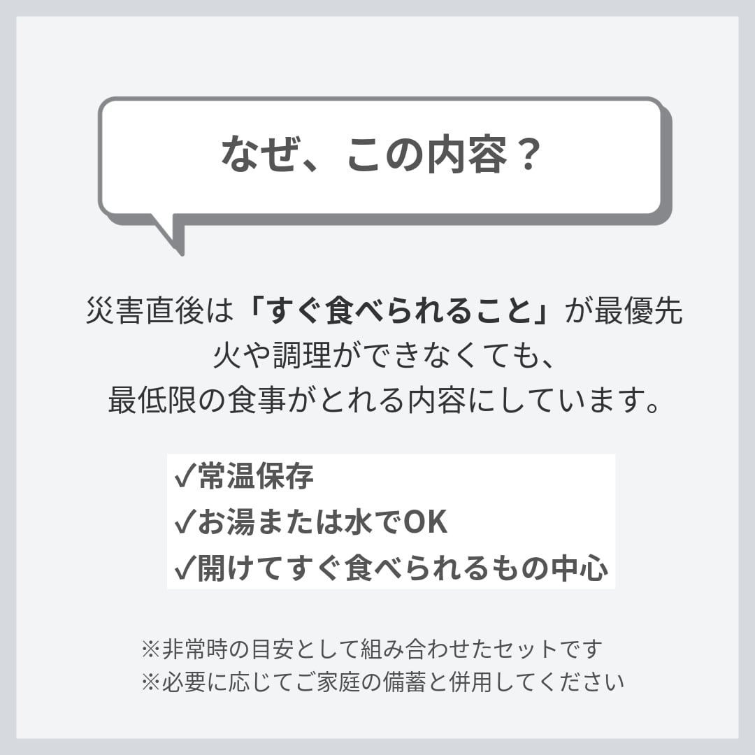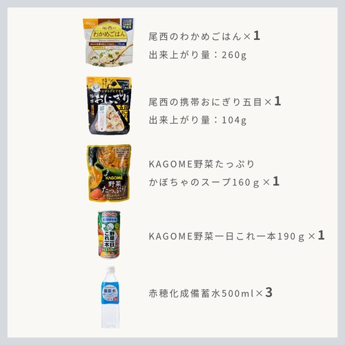 「一人一日分の食と水+栄養セット」は、